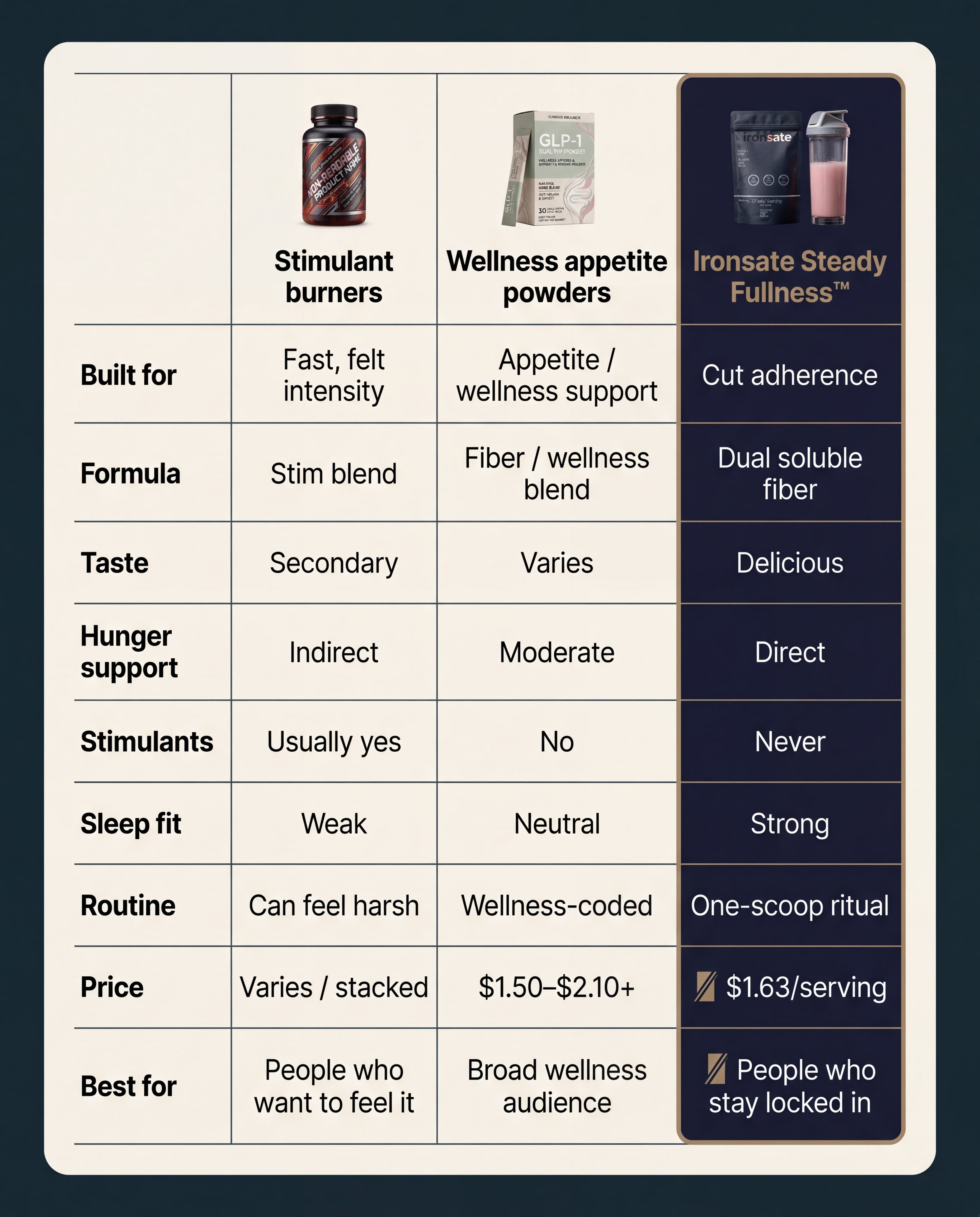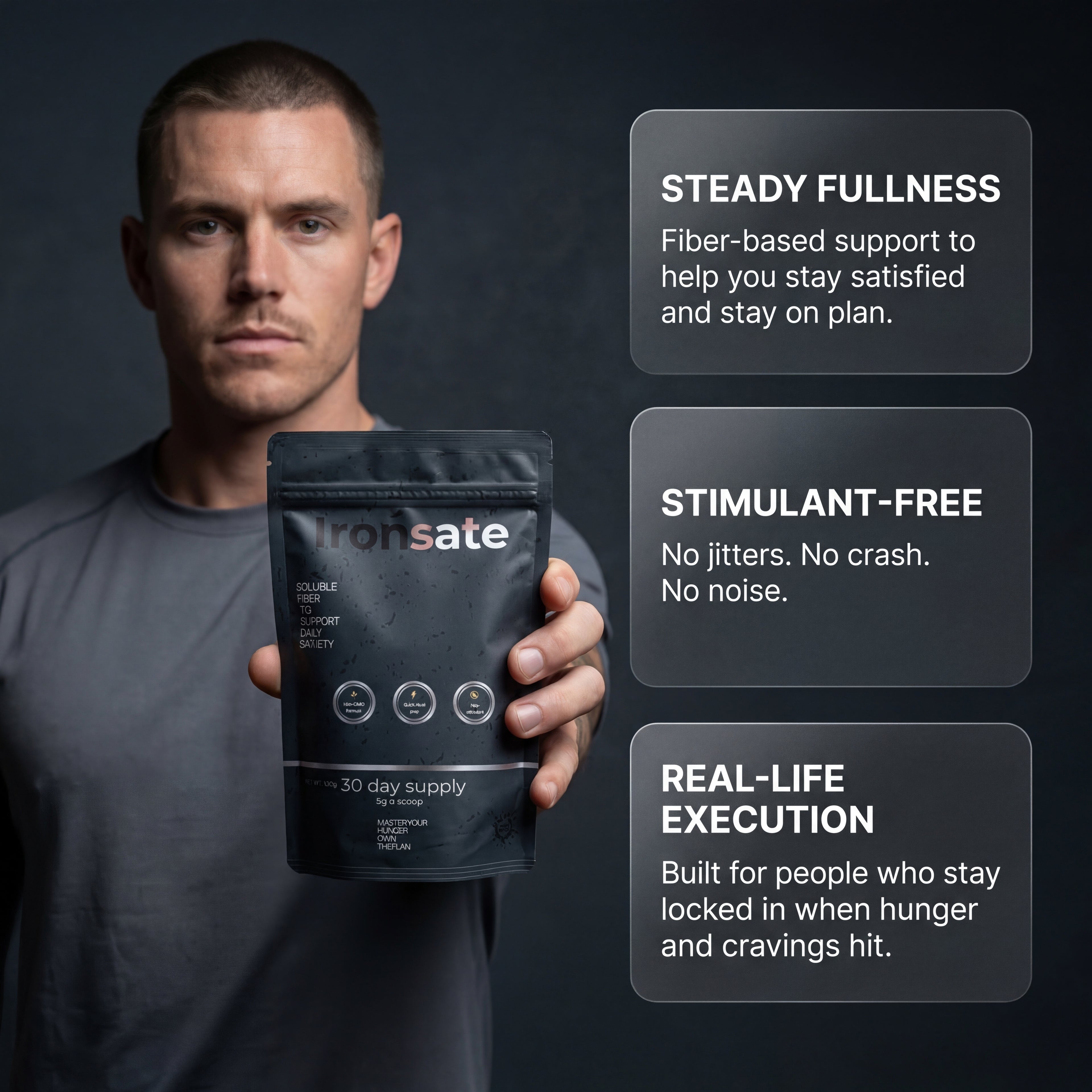 Ironsate Steady Fullness™ exists to reduce that friction — so discipline has a fair fight.